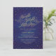 Pequenas estrelas de confete brilham e brilham num efeito de brilho dourado à volta deste simples e doce convite de chá de fraldas contra um lindo e encantador fundo de aquarela azul e roxo, dando a todo o design um sentido de conto, com um guião de efeito de brilho dourado, "Twinkle Twinkle Little Star". Perfeito para um chá chique e fantástico! Arte original de Colleen Michele. Por favor, note-se que não existe um verdadeiro efeito de brilho de ouro ou de folha de ouro nas estrelas e no guião; não será utilizada qualquer brilho, folha de ouro ou tinta metálica neste convite.