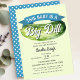 Celebrar a mãe a ser com este Chá de fraldas do Grande Dill Pickle Boy Conite design. Este Design apresenta um grande picles de aquarela com o texto "Um Bebê é um Grande Dill". O inverso é um padrão de bolinhas azuis e brancas. Correspondência de Itens em nosso compro para um tema completo de festa.