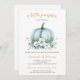 Celebre a chegada da sua abóbora com este belo convite para o chá de fraldas de outono, com uma charmosa abóbora azul no seu coração. Delicadamente trabalhado em aquarela macia, o design apresenta sotaques florais e eucaliptos elegantes em tons pastéis de sujeira, perfeitos para criar uma atmosfera quente e automática. Com a doce frase "está a caminho", este convite é ideal para um chá de bebê. Seu estilo rústico, porém refinado, o torna um ajustado perfeito para aqueles que abraçam um tema acolhedor, o da abóbora. Personalize-o para criar uma manutenção memorável que captura o entusiasmo e o amor partilhados pela família e pelos amigos à medida que se reúnem para celebrar a sua nova chegada.