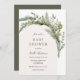Convite para Chá de fraldas do Winter Greenery Arch com um quadro arquitetado de evergreens de aquarela. Personalize com suas informações. Clique em "clicar para personalizar mais" para alterar o estilo, o tamanho ou a cor da fonte.