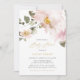 Convide familiares e amigos com este elegante convite cor-de-rosa. Este convite de chá de fraldas apresenta ilustrações aquarelas de flores e folhagem cor-de-rosa pinceladas com um roteiro elegante. Este convite floral será perfeito para primavera, jardim e é um chá de fraldas de Garota. Personalize adicionando os detalhes do evento. Você pode personalizar ainda mais a parte de trás do convite adicionando uma foto ou qualquer outra imagem.