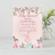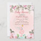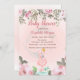 Um flamingo cor-de-rosa, bonito, com uma coroa dourada e um convite para chá de fraldas de flores a aquarelas. Esses convites para chuveiros de bebês são facilmente personalizados para seu evento simplesmente adicionando seus detalhes.