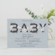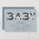Convite à Chá de fraldas de Azul Dusty, com a palavra "Bebê", com uma botânica, flores, ramos e outros elementos naturais de buquês selvagens ilustrados. Personalize com as informações do seu chá de fraldas.