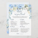 Jogo do chá de fraldas - O que há no seu telefone. Este design apresenta uma ilustração aquarela de azul macio, cinzas e creme de peões e anêmonas. No topo da placa - confete de efeito prateado.
