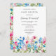 Este belo e elegante convite para chás de fraldas apresenta flores aquarelas em rosa e azul. O texto combina o script manuscrito e as fontes serif para uma aparência na moda e moderna. Isto é perfeito para um primavera ou chá de fraldas rústico de verão.