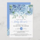 Convite Chá de fraldas Floral Blue Hydrangeas Watercolor