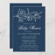 Convite Chá de fraldas Floral com marinho esboçado