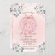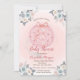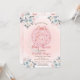 Arco cor-de-rosa e flores em fundo de aquarela. Estes convites para bebês são facilmente personalizados para o seu evento simplesmente adicionando os seus detalhes.