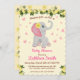 Convite Chá de fraldas Floral de Aquarela de Elefante para