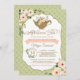 Bem-vinda a uma doce menina e honre sua mãe com um convite luxuoso que é igualmente doce. Este design apresenta tonalidades de florais cor-de-rosa-pincel, verde-menta, branco e dourado e aquarela-macia e uma chaleira de chá brilhante cintilante. Escolha o texto necessário e personalize ainda mais para torná-lo seu próprio texto. Consulte a coleção no compro Convidando Bonito para coordenar peças para ajudar a criar sua ocasião especial.