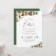 tema do chá de fraldas de cor branca, pintado a branco, cor d'água, cor de laranja floral, com cor d'água verde e laranjas. O texto e as cores podem ser editados.