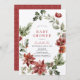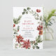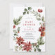 Este elegante convite para chás de fraldas inclui poinsetos vermelhos, papoilas, colheres, bagas, pinheiros e verde em aquarela. O verso apresenta fundo burguês com padrões brancos de neve. Personalize-o para as suas necessidades. Você pode encontrar produtos correspondentes na minha loja.