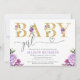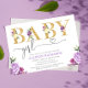 Convite Chá de fraldas floral de folha fina roxa e dourada