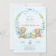 "Duplique a alegria, duplique o amor! Junte-se a nós para celebrar a chegada dos nossos adoráveis gêmeos. Nosso ursinho de pelúcia e chá de fraldas com tema floral é certamente um prazer. Não perca a diversão!" você pode personalizar este convite de chá de fraldas adicionando seus próprios detalhes de chá de fraldas.