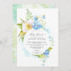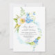 Belo convite para chás de fraldas neutro com cor d'água com delicadas flores azuis, brancas e amarelas. Sacudir nosso design para ver uma cor de água verde e azul coordenada de volta para um toque especial extra.