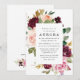 Design apresenta um elegante buquê ou coroa aquosa em tons de vermelho burgundy, Marsala, cor-de-rosa-pincel claro, pêssego, e mais sobre elementos verdes de eucalipto e folhas de ouro vintage.