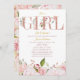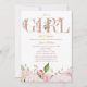Este convite foi projetado com buquês cor-de-água cor-de-rosa com sotaques sujos de ouro e rosa de brilho que certamente impressionam seus amigos e sua família. Douradas fontes e padrões florais tanto na frente quanto no verso criam uma elegante iniciação para seu evento especial. Mostrado aqui para um Chá de fraldas, mas pode ser personalizado para qualquer evento que quiser!