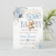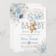 Convite Chá de fraldas Floral Floral Azul do Urso Teddy