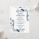 Convite Chá de fraldas Floral marinho Azul Elegante
