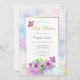 Um convite para chás de fraldas florais, azul e cor-de-rosa, que inclui uma borda dourada e pintada de aquarela pastel.