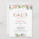 Convide a família e os amigos para o seu chá de fraldas em homenagem à nova futura mãe. Design apresenta buquês florais cor-de-rosa e cor-de-rosa pincelada e um título de tipografia moderna, em quadrinhos, de CHÁ DE FRALDAS com letras realçadas por flores. O texto está em um carvão suave para complementar o design. O verso oferece um lugar para informações adicionais ou o texto de amostra pode ser apagado para deixar o vazio traseiro. Entre em contato com o designer se quiser que este design seja modificado, em outro produto ou se quiser coordenar itens para o evento.