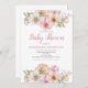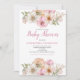 Prepare-se para o chá de fraldas com este elegante convite floral cor-de-rosa e pêssego. Fácil de mudar o texto. Tendy Summer Watercolor design botânica.