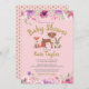 Convite Chá de fraldas Floral Rosa-Rosa Dos Animais Flores