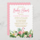 Script de pincel rosa moderno, Cartão de Convite para Chás de fraldas Tropicais de Aquarela com Flamingo Rosa. Script Dourado