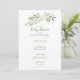 Convite Chá de fraldas Floral Verde e Branco Elegante