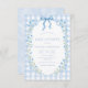 Briso Azul de Orçamento fluindo sobre os detalhes do evento com um quadro floral branco vintage com um fundo gingham azul e branco acentuando as fontes azuis. Um convite perfeito para um evento perfeito. Estilo neutro em termos de gênero. 100% de satisfação do cliente na Zazzle todos os dias.
