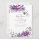 O chá de fraldas floral roxo e violeta poeirento convida com uma tipografia elegante de escrita manual concebida para ser rápida e facilmente personalizada em função das suas especificidades de eventos.