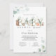 Um chá de fraldas por correio é perfeito para aqueles que vivem uma longa distância dos entes queridos, mas que ainda querem chá para que as mamães estejam com amor e presentes para ajudar a se preparar para o bebê. Este chá de longa distância por convite por correio apresenta as palavras "Bebê" em letras douradas com folhas de eucalipto e animais de floresta e o poema de solicitação "Encontrar entes queridos neste momento é duro. Então, se você quiser, por favor envie seu presente ou cartão. E à medida que eles chegam dia a dia, eles vão sentir todo o seu amor de longe." Personalize com seu texto. Clique em "Personalizar mais" para editar o estilo, o tamanho e a cor da fonte, se desejar.