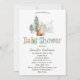 Este convite para chás de fraldas inclui pinheiros, uma raposa e um fundo de madeira rústica. Criado por um chá de fraldas neutro em termos de gênero, este convite certamente impressionará os seus convidados.