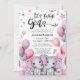 São Gêmeas! Bebê Elefante Rosa Balões Rosa, Cartão de Convite Para Chá de fraldas Bonito. Celebre a chegada do seu bebê precioso com este cartão de convite festivo, chico e bonito com balões de aquarela coloridos, estrelas e corações festivos que brilham ouro, conjuntos de presentes bonito embrulhados com fitas e e-mails decorados florais. Todos os textos estão pré-organizados para que você personalize fácil e rapidamente com os detalhes do seu chá de fraldas.