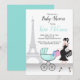 Convite Tema de Paris, elegante e estilizado. O visual da Torre Eiffel e uma adorável cor genérica fazem um tema de Chá de fraldas maravilhoso para sua celebração.