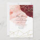 Convite para chá de fraldas com um rico vermelho borrado e vermelho rosado pincelado de tinta a aquarela e um quadro geométrico dourado.