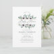 Trendy geométrica eucalipto verde e flores de papoila em tons pastéis convite para chá de fraldas com moldura geométrica dourada e lavagem com aquarela de menta inversa.