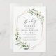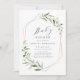 O convite para chás de fraldas verde moderno continha folhagem botânica de cor aquática rústica verde e folhas falsas de folha de ouro e estrutura geométrica, simples e elegante. Ver todas as peças correspondentes na coleção