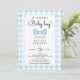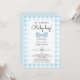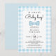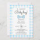 Convite de Chá de fraldas Gingham Azul. Este design Chá Gingham Baby Boy, encantador Arco, apresenta um adorável conjunto de designs de arco azul-aquáticas contra um clássico fundo de gingham, criando um rústico e aconchegante se sentir perfeito para celebrar a chegada de um bebê. Clique em personalizar este modelo para adicionar suas próprias informações. Projetado por Designs SweetFind