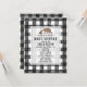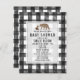 Um convite de chá de fraldas com uma silhueta inspirada em uma mama e um urso bebê sobre um fundo de gingham preto. Personalize o texto em preto.