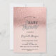 O convite para chá de fraldas bonito apresenta o chá de fraldas glitter bokeh glitter rosa. Esses convites para chuveiros de bebês são facilmente personalizados para seu evento simplesmente adicionando seus detalhes.