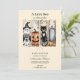 Celebrar a chegada de um pequeno boo com este agradável convite de chá de fraldas gótico, com um fantasma de estilo vintage, gato preto, abóbora e pedras. Perfeito para amantes de outono e mães de Halloween que querem uma mistura de assustador e doce.