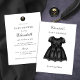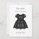 Convite Elegante para Chás de fraldas Góticos. Design apresenta um sofisticado selo de cera negra gravado com um crânio ouro, que adiciona uma elegância gótica escura e sensível. Personalize seu convite com texto personalizado sob o selo, garantindo um anúncio verdadeiramente unívoco. O verso mostra um vestido preto de bebê gótico, elegantemente adorado com um arco preto e um crânio ouro. Este lado é personalizável, permitindo que você adicione seu toque pessoal ao convite.
