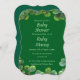Capas verdes pintadas em volta de um fundo verde. O texto é branco com contornos verdes e uma sombra verde mais leve como um convite totalmente personalizável a um chá de fraldas para ser mãe.