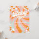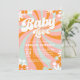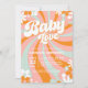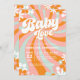 Convite para Chá de fraldas Groovy. Chá de fraldas feminino convida com flores margaridas estilo 70s e cores rosa, verde e laranja. Boho retro Groovy baby love design chá de fraldas.