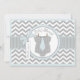 Cinza chic e impressão chevron branco com contraste azul de bebê e um jumper de bolinhas giro com gravata e arco de aparência 3D e fita para um chá de fraldas de garoto.