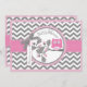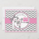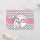 Cinza chic e impressão chevron branco com uma coruja cor-de-rosa estendida em galho de carvalho e arco de aparência 3D e cartão de convite para chá de fraldas de menina de fita.