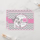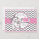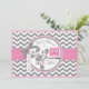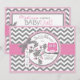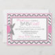 Cinza chic e impressão chevron branco com uma coruja rosa empoleirada em uma ramificação de carvalho e arco de aparência 3D e placa de convite para chá de fraldas de menina de fita.