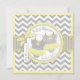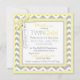 Ponta de jumper impressão de bolinhas de doce na linha de clothesline e arco 3D e fita para a placa de convite para chás de fraldas de meninas gêmeas. As cores são amarelos e cinza.