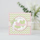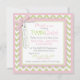 Ponta de jumper impressão de bolinhas de doce na linha de clothesline e arco 3D e fita para a placa de convite para chás de fraldas de meninas gêmeas. As cores são cor-de-rosa, verde e branca.
